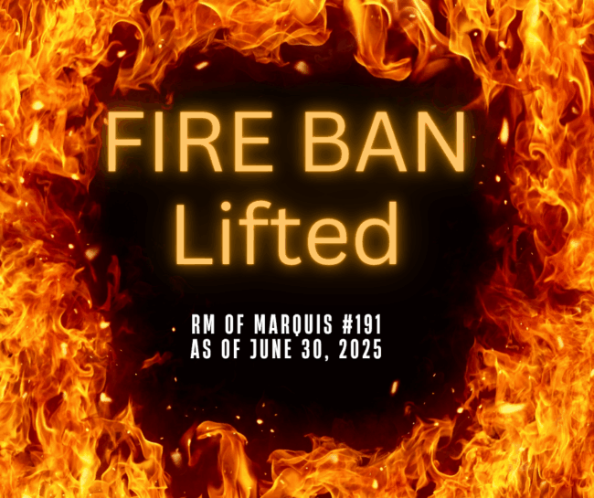 Please be advised that as of June 30, 2025 the fire ban for the R.M. of Marquis has been lifted.